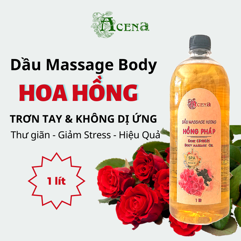 🌿 DẦU MASSAGE BODY ACENA HOA HỒNG – DẦU MASSAGE SPA THƯ GIÃN, TRƠN MƯỢT